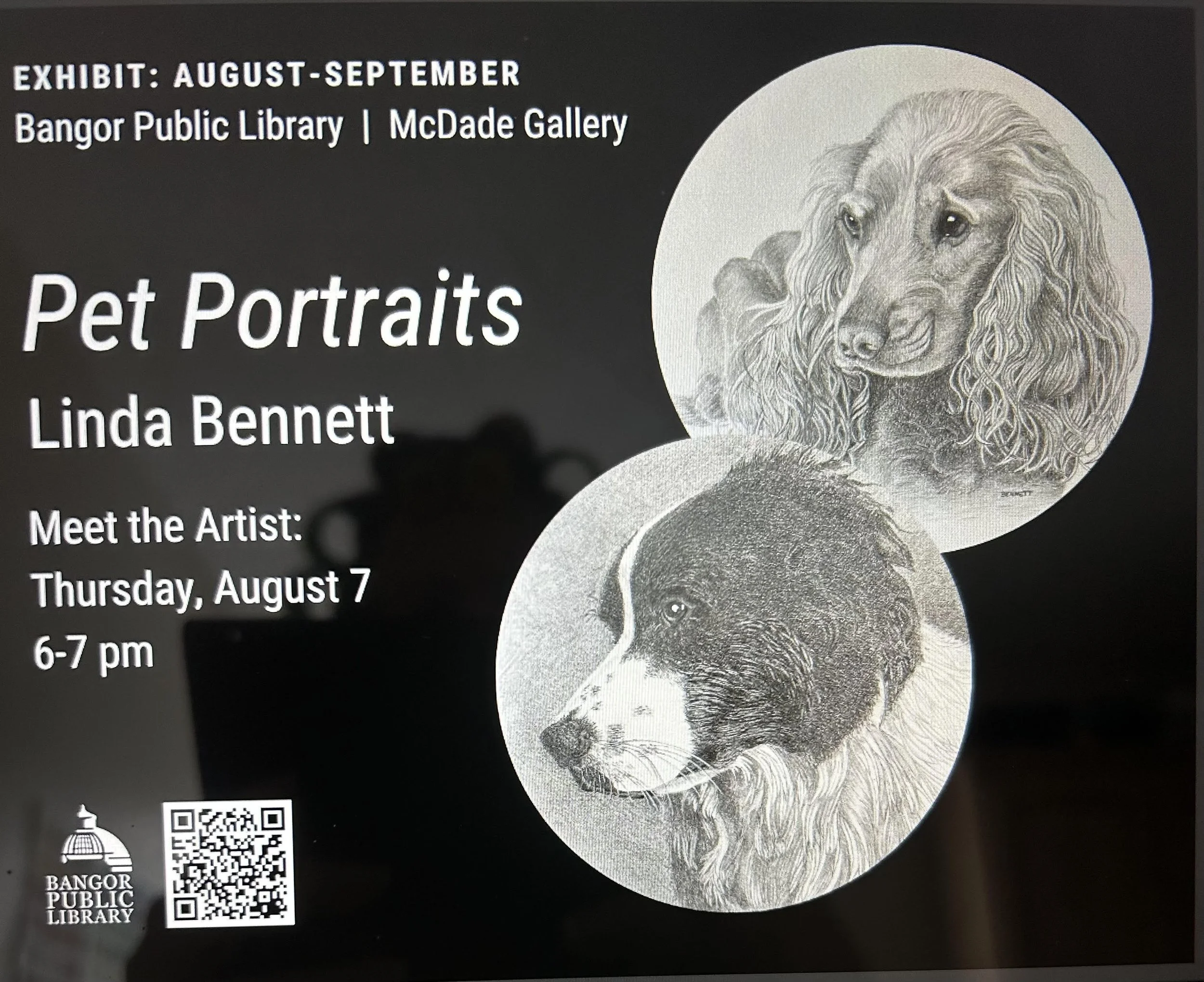 Calling All Artists! I will be showing my animal pencil drawings in the Barbara McDade Gallery, in Bangor, Maine. The exhibit is for August - September of 2025. Sponsored by the Public Library, various forms of art are exhibited for a duration of two months and exhibits are continuous throughout the year. While visiting the library, one day, I noticed a small 4x4 piece of paper with the words “Calling All Artists” and applied.